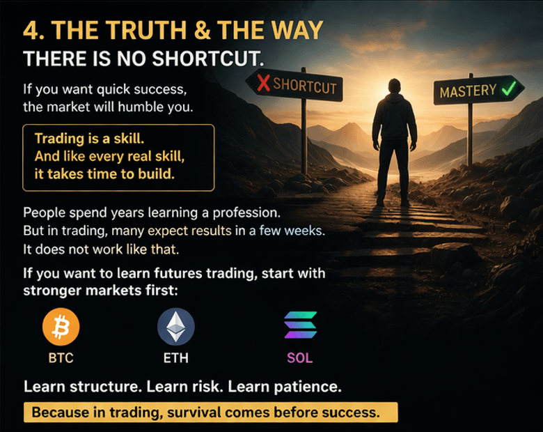 If you come only for quick success, this market will break you emotionally before it teaches you anything. Trading is not a quick-rich game. It is a skill. And every real skill takes time.