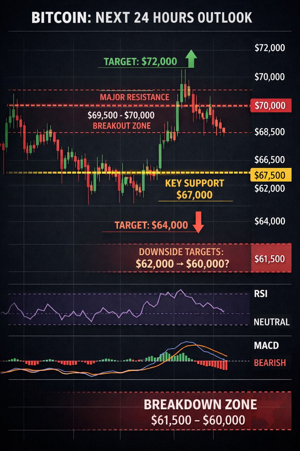 More likely: 👉 Range: $66K – $69K 👉 Sweep downside liquidity first