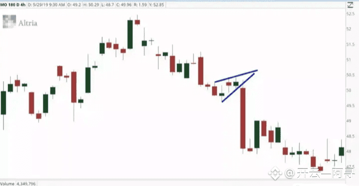 到的牛市旗形相同,标的价格在初始下跌时交易量增加,然后在旗帜形成/整合时减少,最后在突破