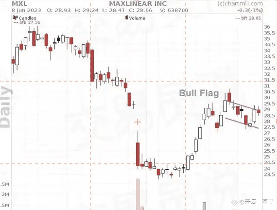 看张旗形(Bull Flag)是技术分析领域中的一种形态。它出现在上升趋势中,其特征是一个整理阶段,表现为一个小矩形或略微向下的斜率,随后向上突破,恢复上升趋势。