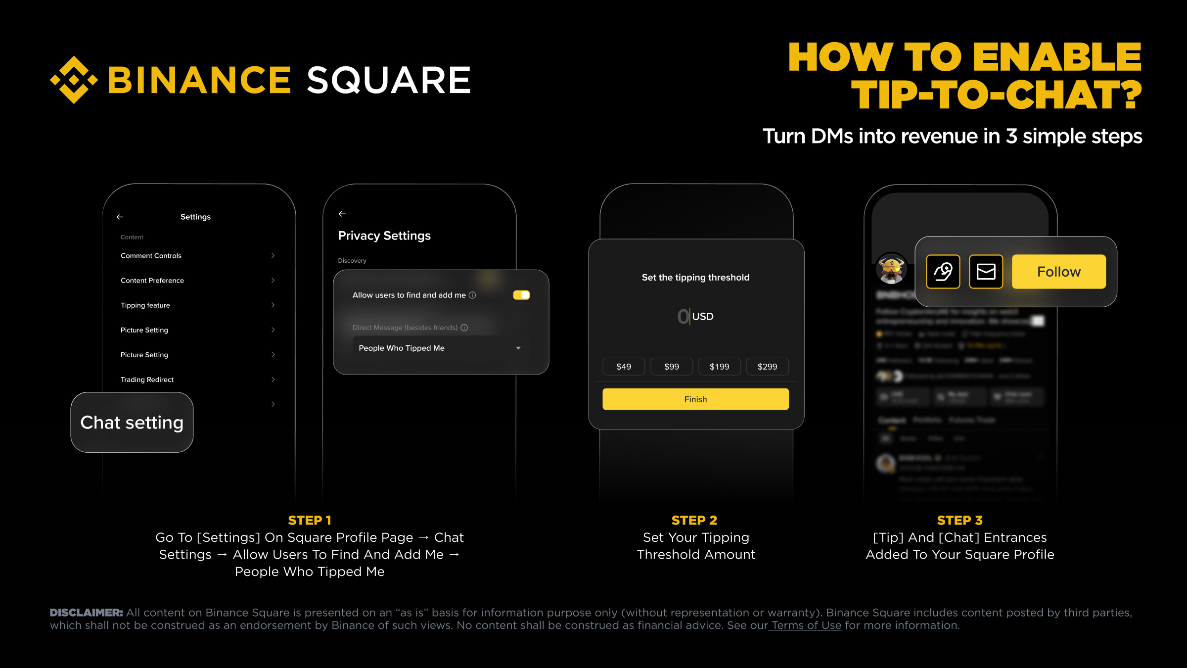 Tip to Chat is a feature that allows users to open private 1-on-1 conversations with creators by sending a tip that meets a minimum amount set by the creator.