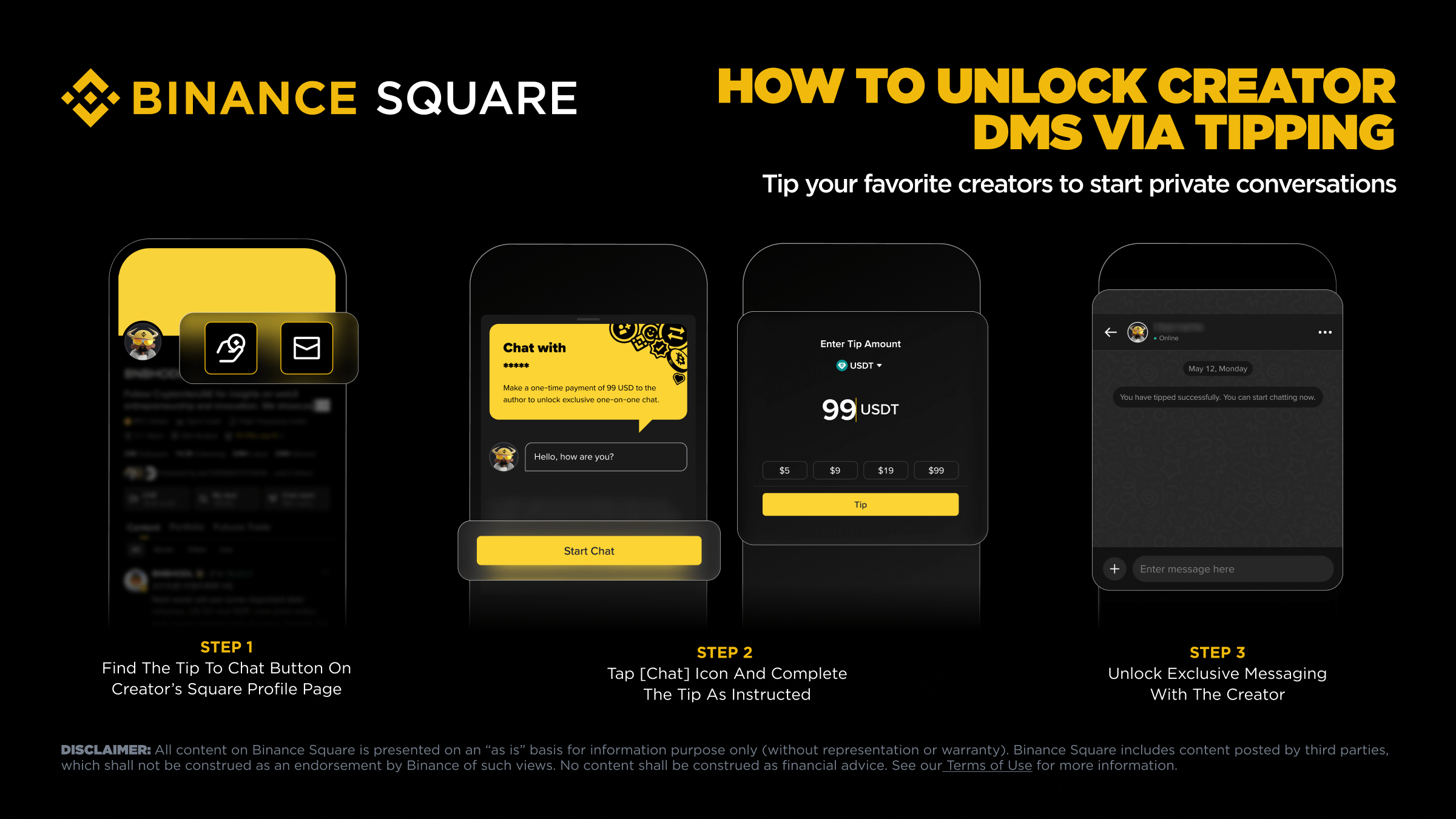 Go to a creator’s Square profile and find the Tip to Chat option.