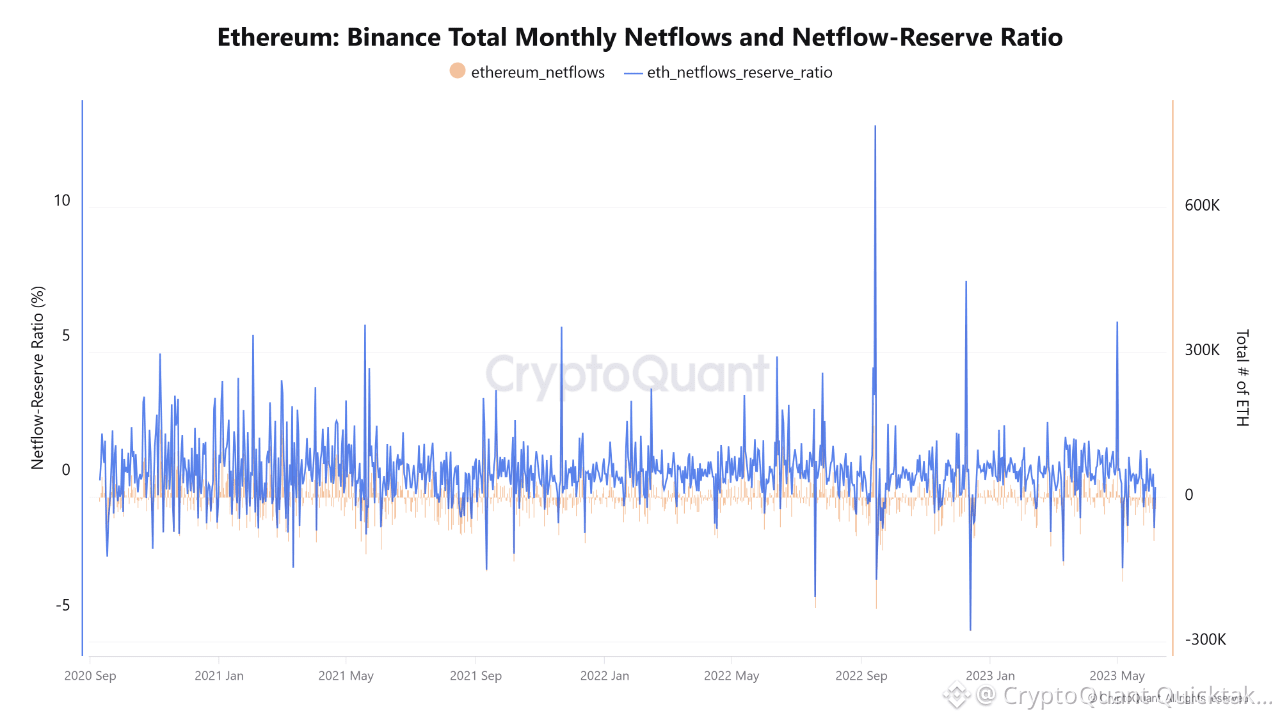 On the Ethereum side, unlike Bitcoin, netflow is slightly negative, while the reserve ratio remains weak around the 0 level. In other words, there is no clear selling pressure. At the same time, there is no strong outflow from Binance either. Supply is close to equilibrium there is neither significant selling pressure nor a strong demand signal. This suggests that Ethereum may remain stronger relative to Bitcoin.
