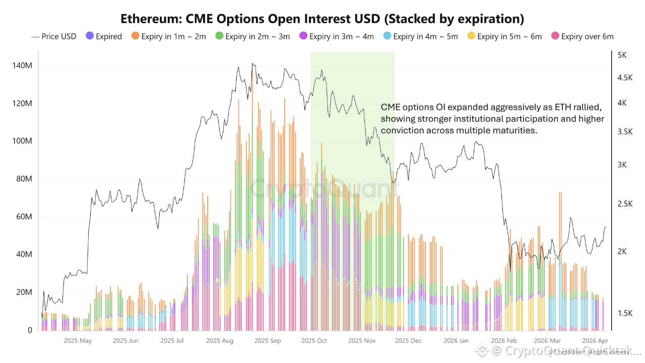 This matters because institutional conviction is often expressed not only through outright futures or spot buying, but through the willingness to hold optionality further out on the curve. A lighter long-dated options structure signals reduced confidence in a strong medium-term upside path.