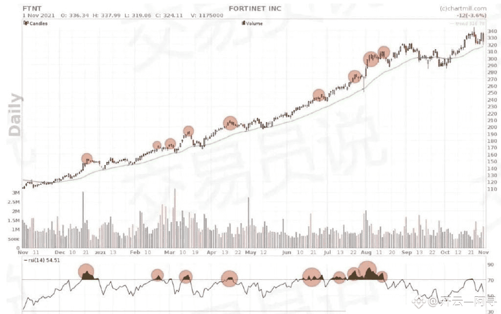 图中红色圆圈表示卖出信号,绿色圆圈表示潜在的买入信号。任何在绿色圆圈处买入并在红色圆圈处卖出的交易者都获得了非常可观的利润!