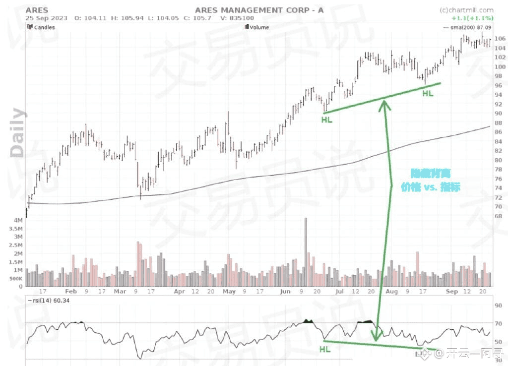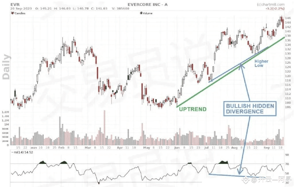 隐藏背离是经典背离的衍生形式,主要出现在呈现明显上升或下降趋势的股票中。
