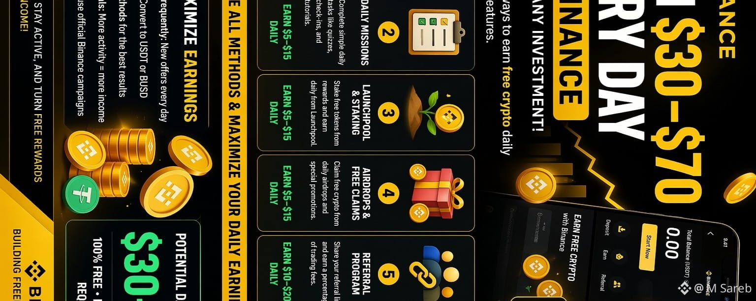 I’ve been testing different features on Binance, and I found that by combining a few smart methods, it’s actually possible to earn $30–$70 in a single day without investing anything.