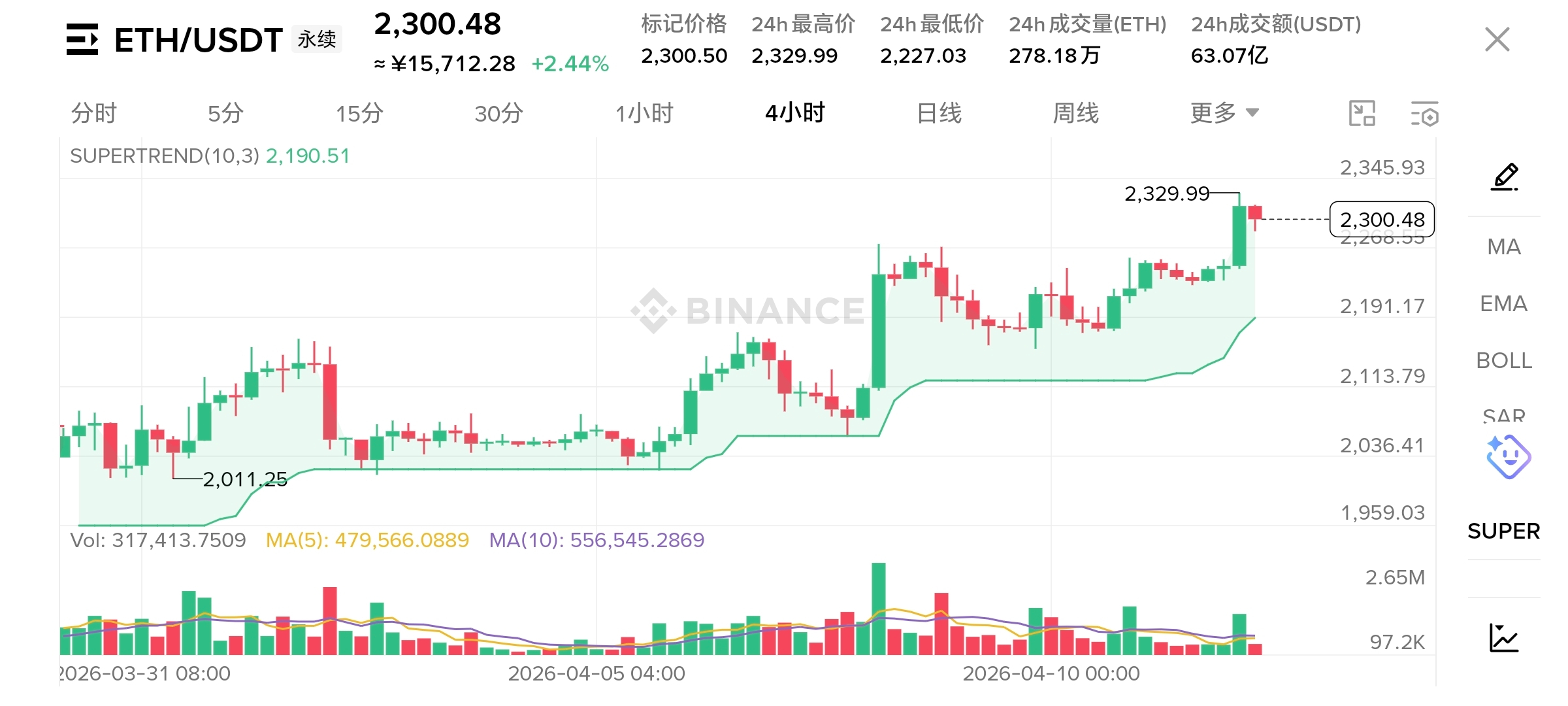 然后再来看看行情,由于霍尔木兹海峡鱼雷排完以后美军通过了霍尔木兹海峡以后,行情直线上升大饼从72560美元一路拉到73773美元,以太从2236美元处一路拉到2329美元处,那么接下来关键还是要看美伊今天新一轮谈判,这个比较重要快的话明天就会出来结果了,接下来我们还是要重点大饼75000关口能否突破且站稳站不稳一样的下来,以太的话目前就是前高的位置看能否突破了,下方大饼71500和7万关口支撑着,以太2200支撑比较强硬,现在舆论战还在进行耐心等待会谈结果。#美国3月CPI大幅上升 #香港首批稳定币牌照出炉 #TBPN访谈CZ #币安钱包上线预测市场 #eth $BTC