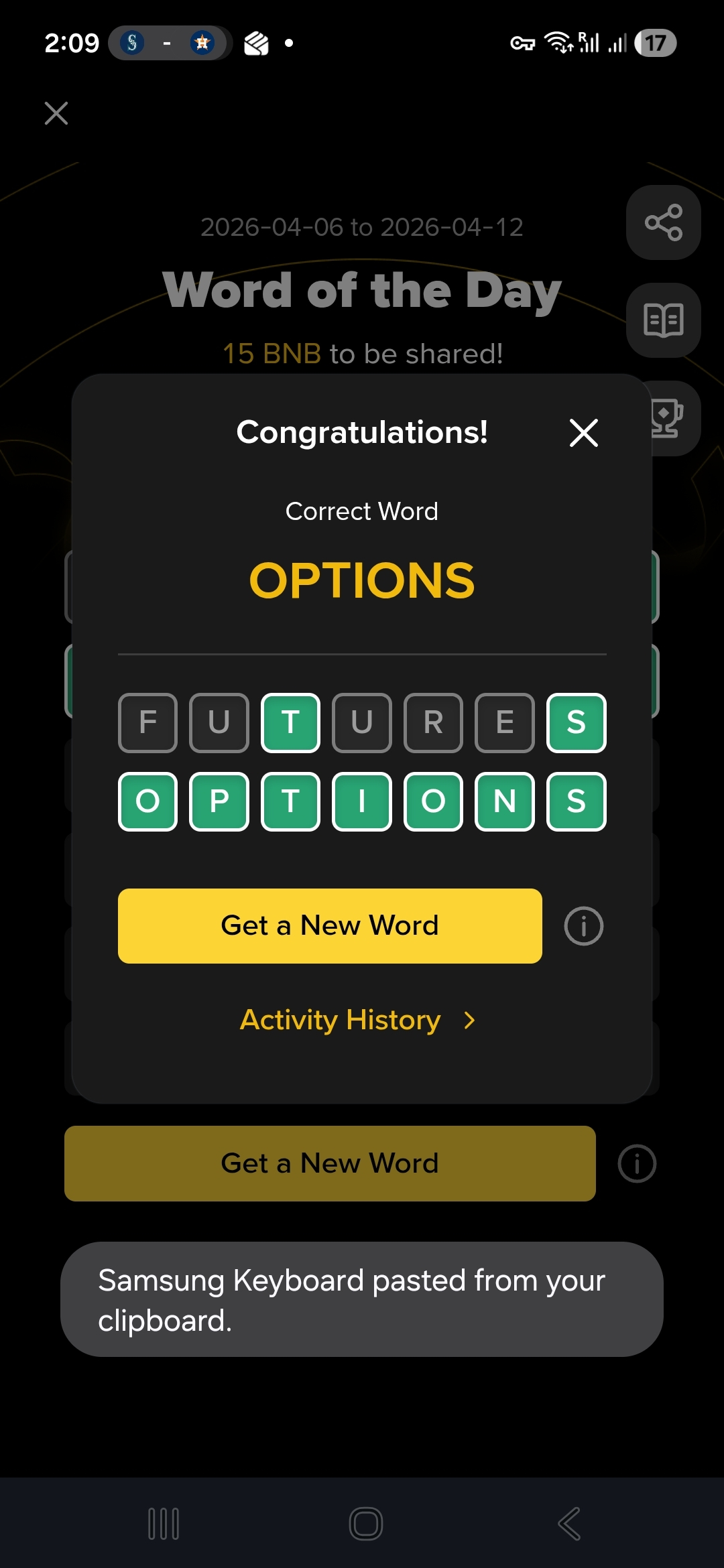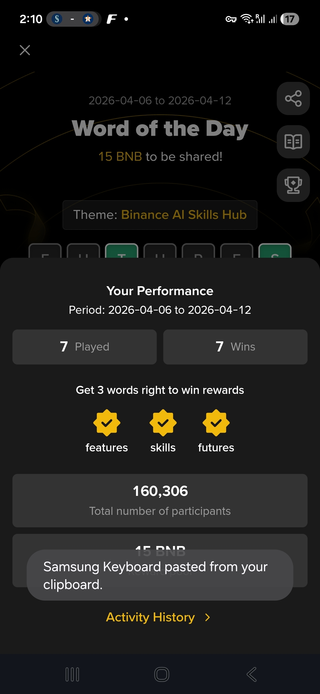 Just solved today's word: OPTIONS under the Binance AI Skills Hub theme!