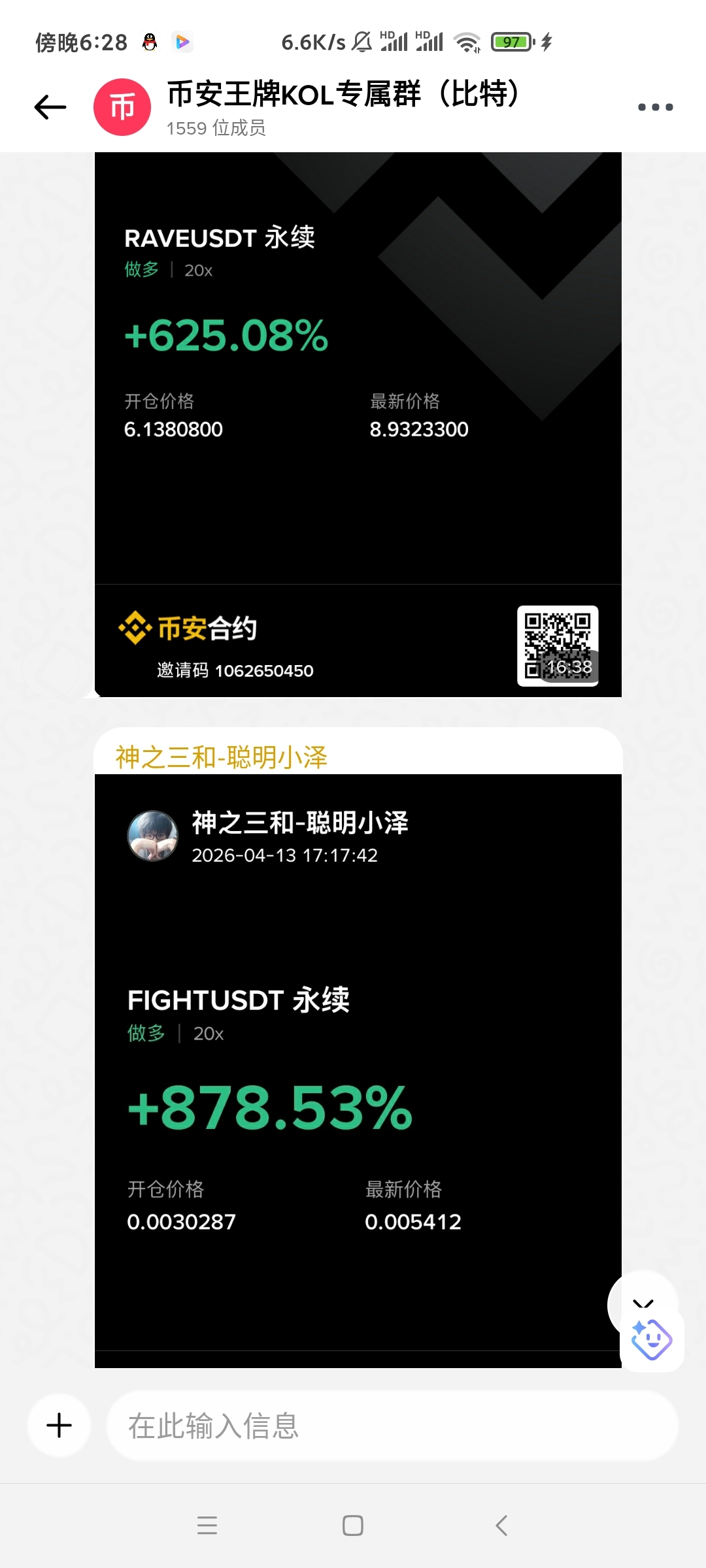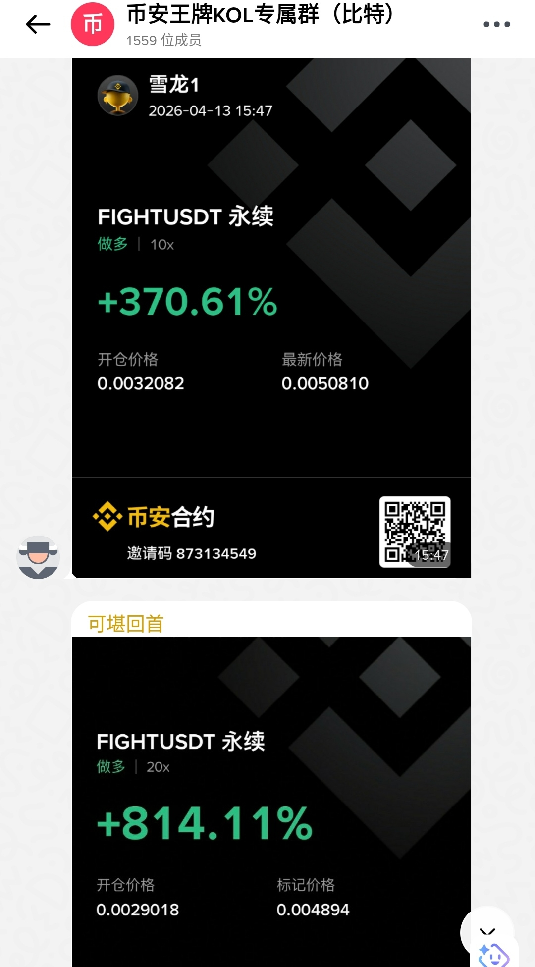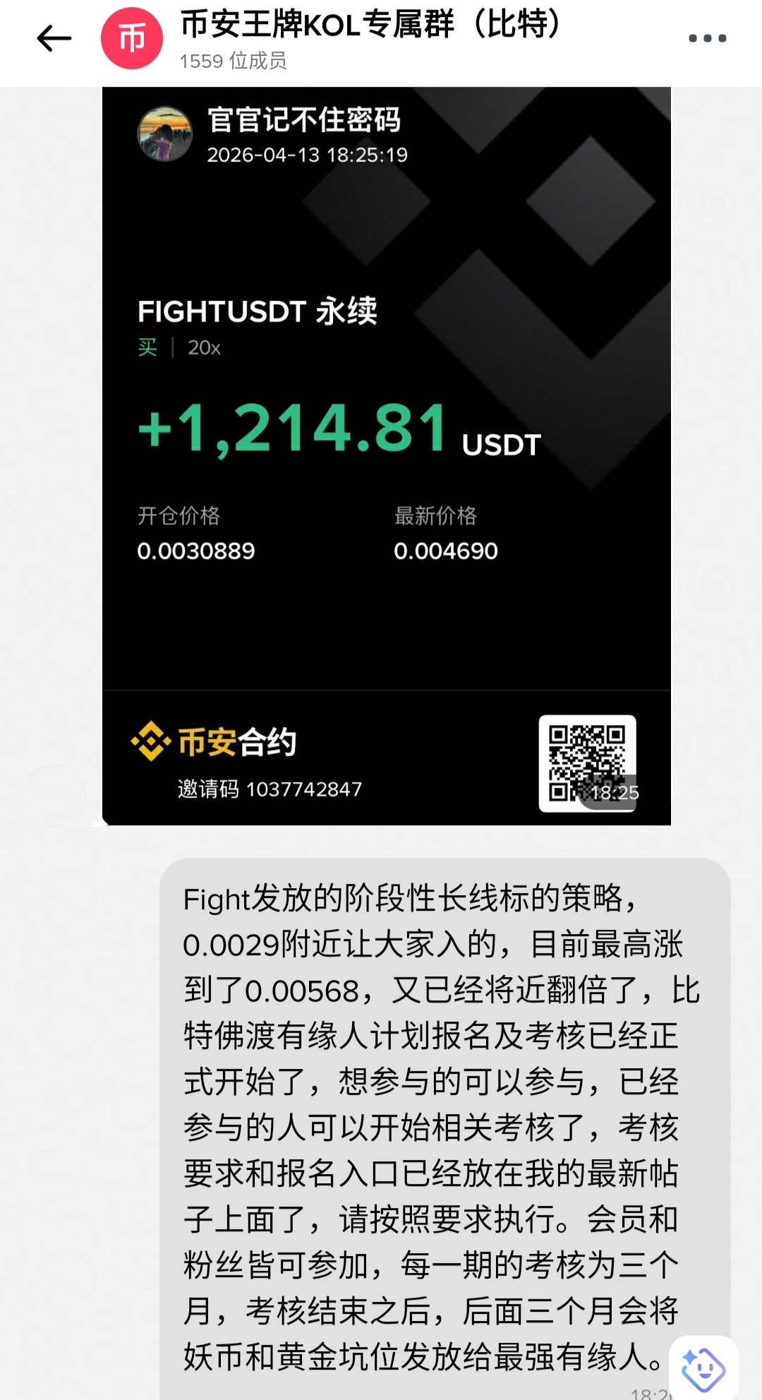 下面是几位宝子fight阶段性长线策略的执行情况,取自我本人比特的专属聊天室,像下面的情况还有很多,可以去我本人的币安属聊天室进行查看。