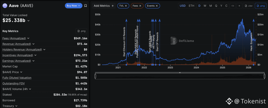 Aave Labs serves as the primary development team behind the Aave protocol, which currently holds around $25.5Bn in total value locked and nearly $18Bn in outstanding borrows, figures that position it as the dominant lending venue in decentralized finance.