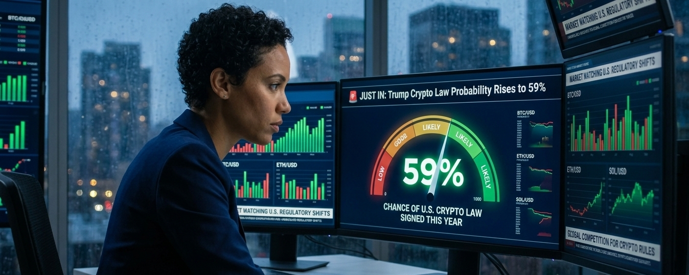 There is now a 59% chance that Donald Trump could sign a new crypto law this year.
