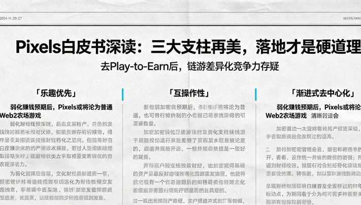 白皮书最后说,“Pixels将会成为数百万用户进入Web3的门户”。这个愿景很打动人。但门户的价值不在于门本身有多好看,而在于门后面到底有什么。如果Pixels能跑通“真正好玩的链游”这个模式,它就是门户;如果跑不通,它只是一扇装修精美但没人愿意走进去的门。