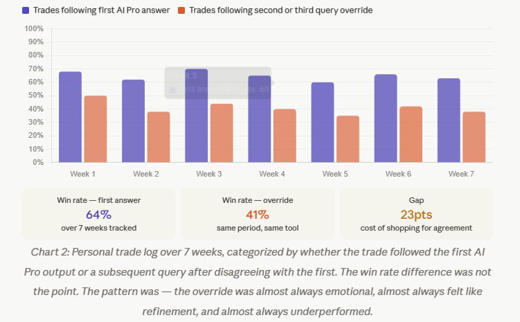The position moved against me for three days before recovering. When I reviewed the session, the first answer had been more useful. The second had been more comfortable. I had selected comfort and called it a better analysis.