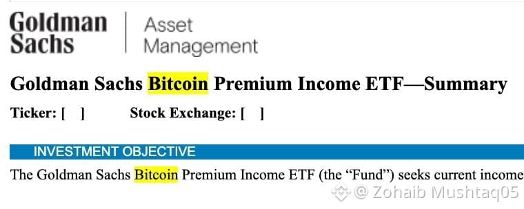 If you spend time around markets, you get used to the way big news often arrives in small packaging. A filing. A few pages of legal language. A name that sounds like it was built by committee. That’s why reports that Goldman Sachs has filed for a “Bitcoin Premium Income ETF” land the way they do. Not with fireworks, but with a quiet signal: this is another step in turning Bitcoin exposure into something that fits inside the habits and constraints of traditional portfolios.