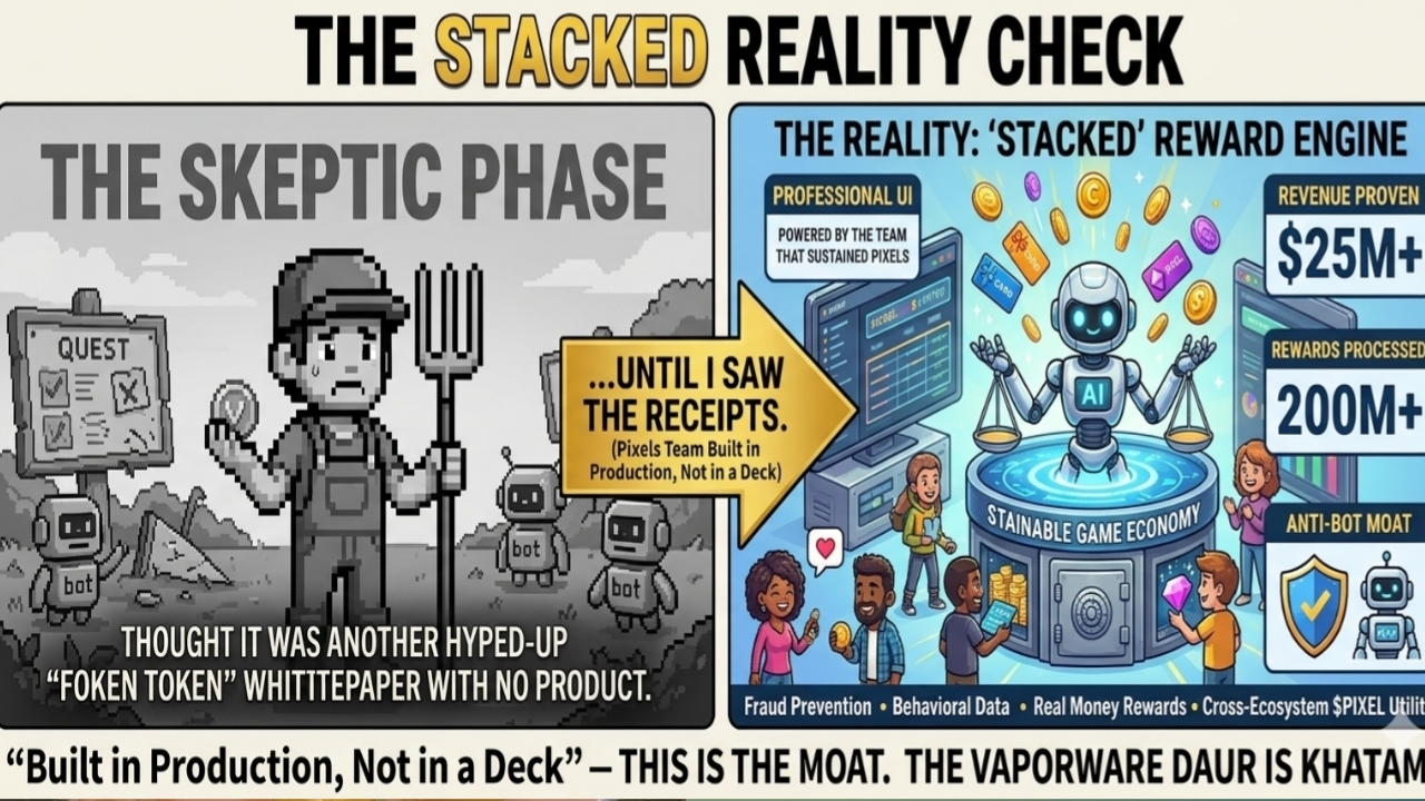 Most projects that launch a "reward engine" built it last Tuesday. Stacked? This is the same infrastructure that kept Pixels running through the hype, through the grind phases, through the moments when most Web3 games quietly die. It processed over 200 million rewards and helped generate $25M+ in real revenue. That's not a pitch deck number. That's a receipt.