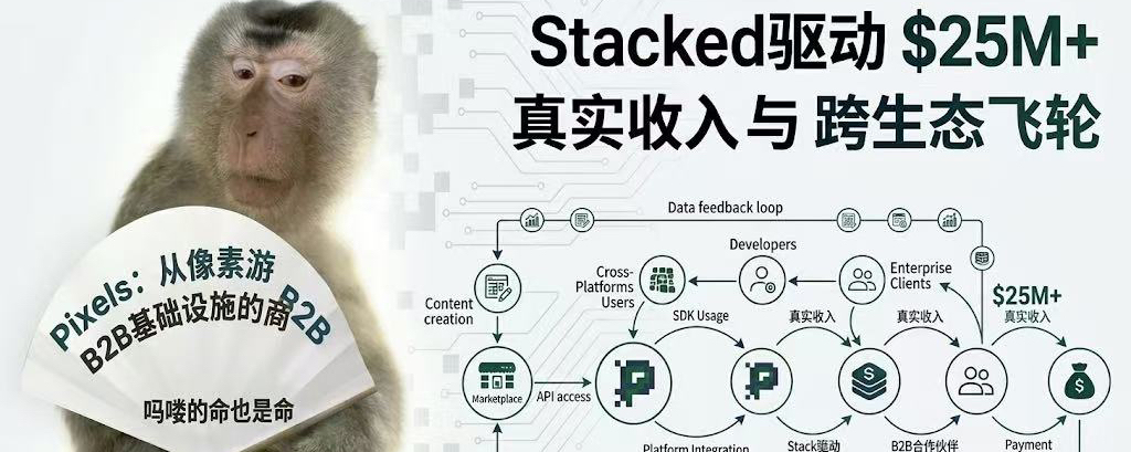 2026年初,@Pixels 凭借Stacked基础设施,已从单一像素农场游戏蜕变为Web3游戏赛道最硬核的B2B商业典范。Stacked-powered系统直接贡献了Pixels生态超过2500万美元真实收入,这不是PPT上的理论估值,而是链上可审计、玩家真实付费转化的铁证。