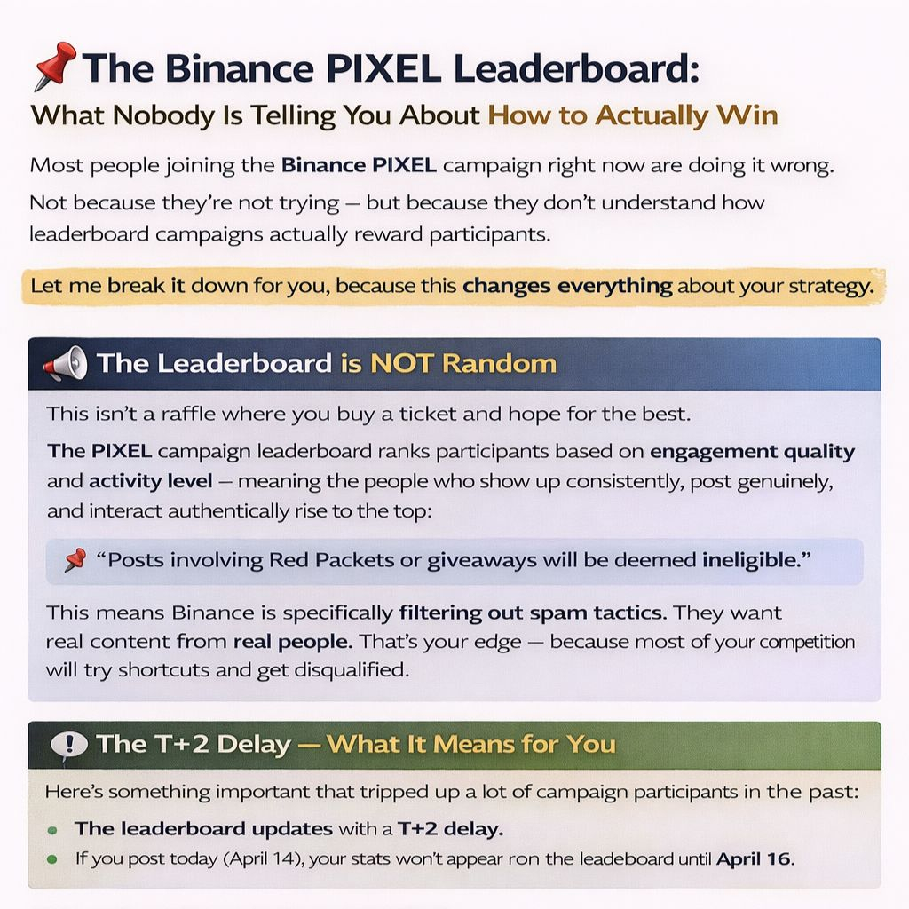 This means Binance is specifically filtering out spam tactics. They want real content from real people. That's your edge — because most of your competition will try shortcuts and get disqualified.