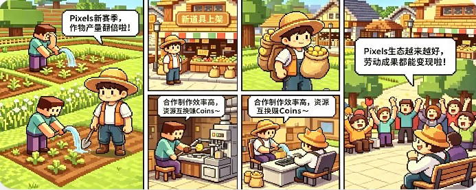起初我也觉得,直接用劳动换$PIXEL 才公平,可细想就明白,种地零门槛,脚本工作室能24小时狂刷,代币会瞬间通胀归零,普通玩家根本没立足之地。Pixels早就吃过代币泛滥的亏,才设置Coins这条劳动线,把无限刷取的无效努力全接住,守住@Pixels 价值线的平衡。