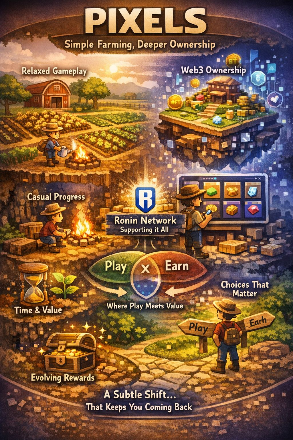 What is interesting about Pixels is how ordinary it tries to feel on the surface Farming exploring upgrading these are not new ideas You have seen them in games for years They are comfortable mechanics almost nostalgic in a way It does not try to overwhelm you with complexity in the beginning which is probably why people underestimate what is sitting underneath