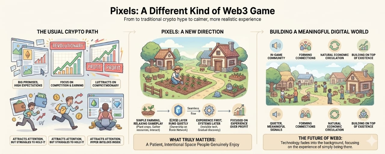 At the same time, there are limits that cannot be ignored. The casual nature of Pixels may not appeal to everyone. Some players want depth, competition, or high-stakes gameplay. Others may remain skeptical of anything connected to blockchain, no matter how well it is designed.