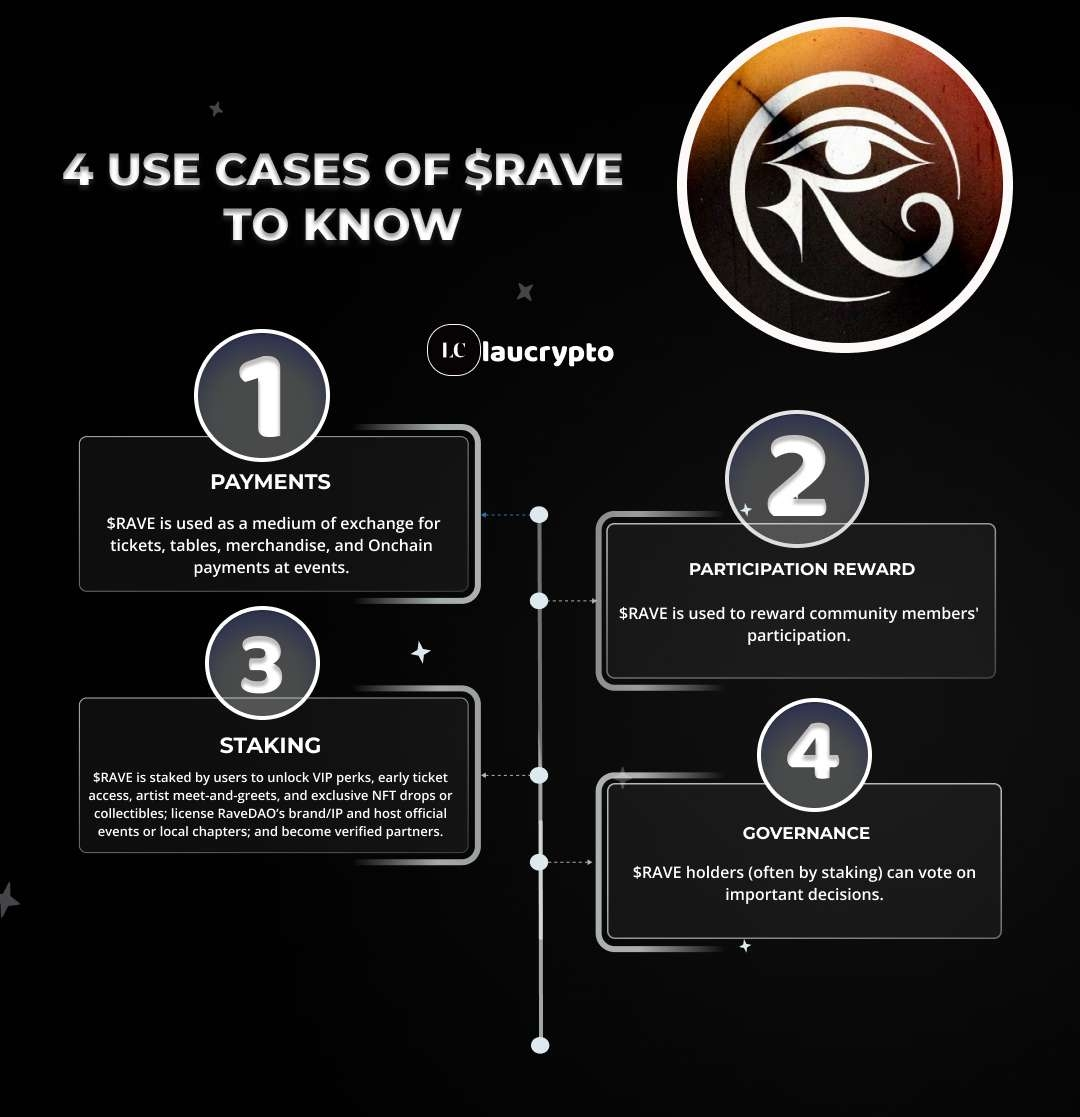 $RAVE é o token nativo do RaveDAO, um protocolo descentralizado de eventos e entretenimento que usa blockchain para gerenciar, monetizar e governar eventos musicais no mundo real.