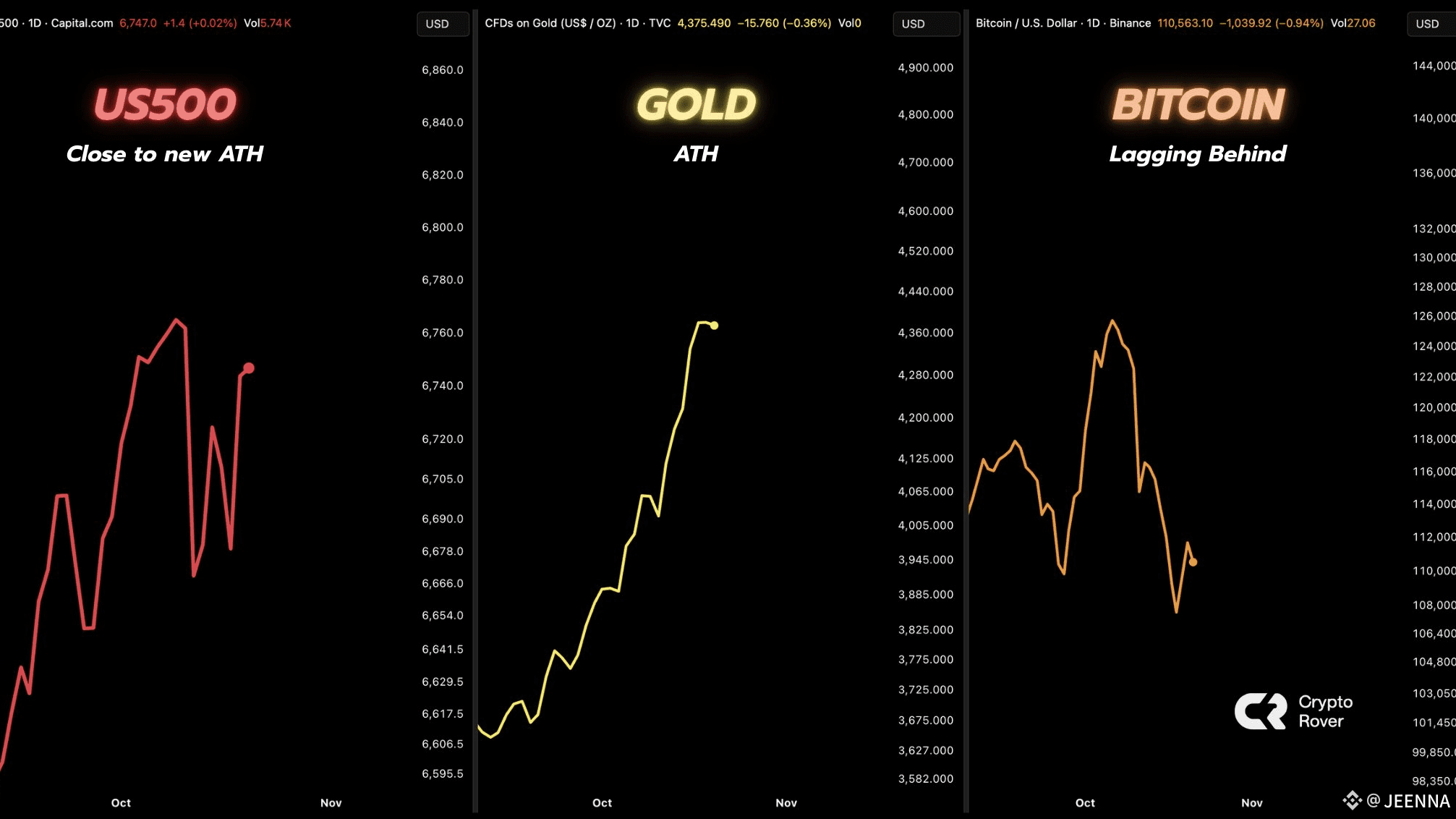 Altcoins have been stealing the spotlight recently, with projects like Solana, Near, and Avalanche outperforming Bitcoin on a weekly basis. But this rotation often happens before Bitcoin dominance snaps back. As traders take profits from faster-moving alts, the capital tends to rotate back into BTC for stability. That could be the trigger for the “catch-up” phase many are now watching for — when Bitcoin reclaims market leadership and drags the rest of the market higher with it.