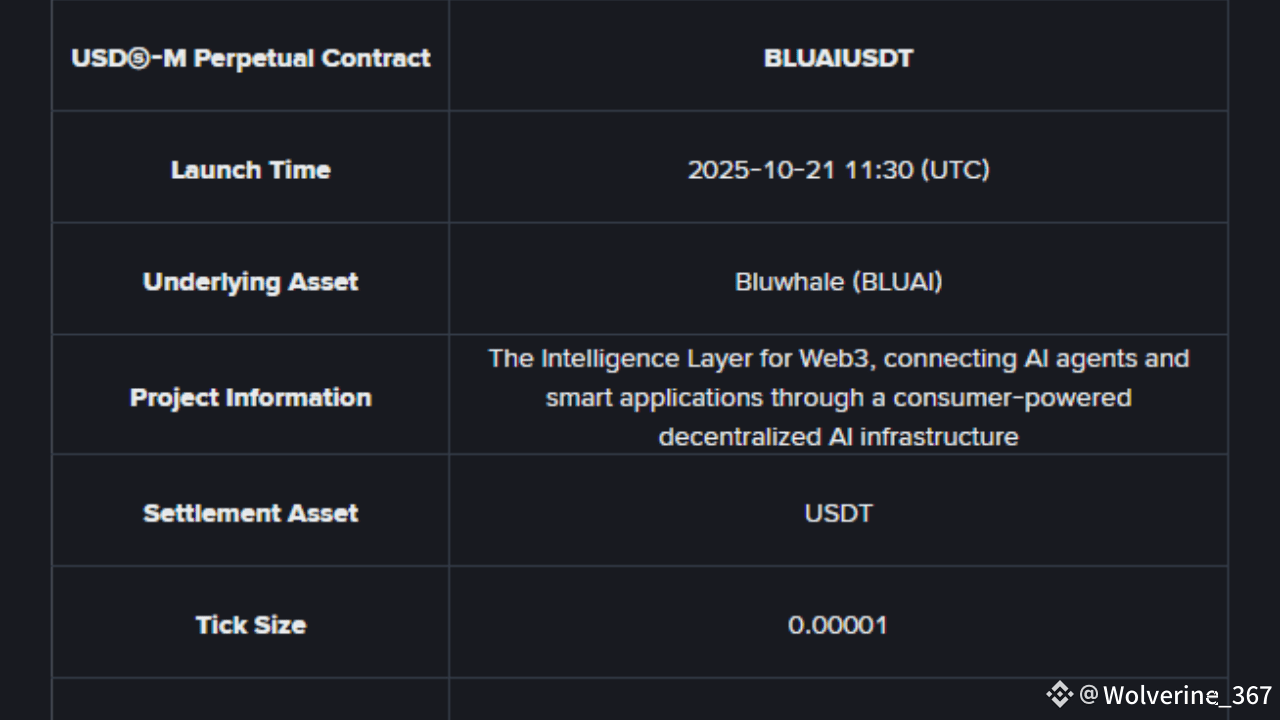 Binance is excited to announce that Bluwhale (BLUAI) will open for trading on Binance Alpha starting 2025-10-21 11:00 (UTC). In addition, Binance Futures will launch BLUAIUSDT Perpetual Contract with up to 50x leverage at 2025-10-21 11:30 (UTC).#Bluwhale $BLUAI