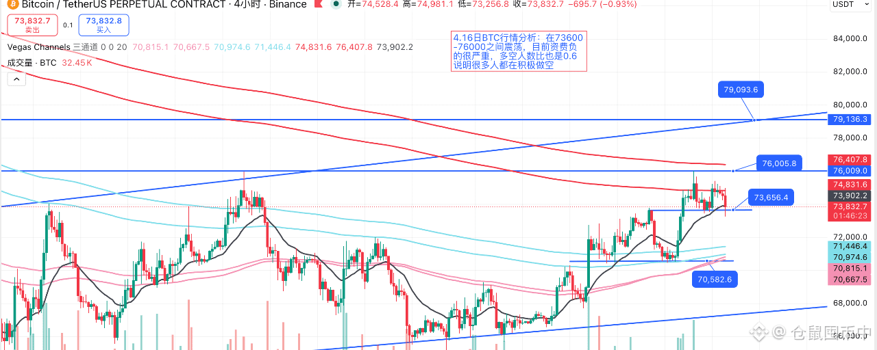 • 到了76000:别急着空!观察价格行为,如果假突破(突破又跌回),可以小止损试空,看向73600-74000。