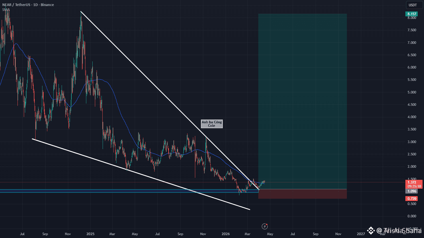 #NEAR يعرض حاليًا حركة سعرية منهجية وحاسمة للغاية، تتماشى تمامًا مع تحليلنا الفني العميق من قبل أسبوعين. إن اختراق شمعة السعر من قيود القناة الهابطة طويلة الأجل، متبوعًا بإعادة اختبار دقيقة للحد العلوي، يمثل تصريحًا قويًا يكسر أي شكوك بشأن زخم الثيران الحالي. هذه ليست مجرد قفزة فنية عشوائية؛ بل تمثل تحولًا منهجيًا في هيكل السوق ضمن دورة 2026. بعد هذه المرحلة الناجحة من بناء الزخم عند الدعم الفولاذي الذي تم إنشاؤه حديثًا، قد غزا الأصل رسميًا المتوسط المتحرك لفترة 100 (MA100) - وهو فلتر حيوي يُستخدم لتأكيد الصحة طويلة الأجل واتجاه الأصول الرئيسية.
