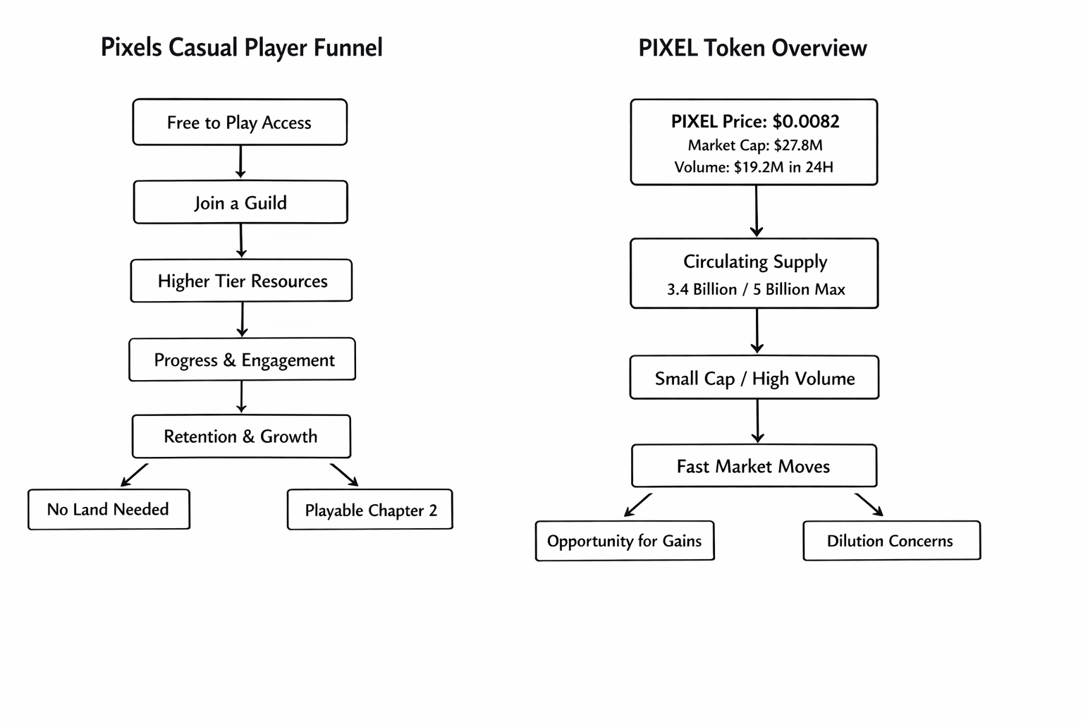 For traders, that feature matters because accessibility is not just a player issue. It’s a retention issue. A lot of GameFi projects lose casual users right at the point where the system starts asking for commitment before the player has built any habit. Pixels is trying to avoid that trap. If a new or low commitment player can log in, join a guild, touch better resources, and feel actual progression without needing land first, the funnel gets wider and the early drop off should be lower. Think of it like letting someone use a gym with decent equipment before asking them to buy the annual membership. You still need them to come back, but at least you gave them a fair shot to feel the value first. Now look at the token side. PIXEL is trading around $0.0082 today, with a market cap near $27.8 million, 24 hour volume around $19.2 million, and a circulating supply around 3.4 billion out of a 5 billion max supply. CoinMarketCap is in the same range, showing about $27.9 million market cap, roughly $19.4 million in 24 hour volume, and about 3.38 billion circulating. That tells me this is still a small, very tradable market where flows can move price fast, but conviction is still fragile. When daily volume sits so close to market cap, it usually means attention is active, but it doesn’t automatically mean holders are deeply committed. Traders are here. Long term certainty is not. That’s where the bull case gets interesting. If Pixels can keep making casual players feel useful inside the world, not just tolerated, then guild linked free to play access becomes more than a quality of life feature. It becomes part of the project’s defense against the Retention Problem. More users staying active means more demand for progression, social coordination, and in-game status loops. Pixels is still pushing the broader free to play angle on its official site, and Chapter 2 added more recipes, tiered industries, faster production times, skill changes, and more core loop depth. In plain English, the game has been trying to give people more reasons to log back in than just token rewards. That’s the right direction. But I’m not blindly sold. Here’s the tradeoff that keeps me cautious. Guild access helps casual players, but it also means the project has to keep social structures healthy. If guilds become too gated, too extractive, or too dependent on a few organized players, casual users can still get pushed to the edge even if the system looks open on paper. There’s also token pressure to think about. A 5 billion max supply against roughly 3.38 to 3.4 billion already circulating means dilution is not a theoretical problem you can ignore. And if the player routine weakens, small-cap liquidity can turn from a strength into a trap very quickly. Fast volume cuts both ways. So yes, I think Pixels is worth watching right now, but not because I expect magic from the chart. I’m watching because the guild-enabled free to play design feels like one of the few practical answers to the casual player problem, and casual players are usually the ones that decide whether a game economy breathes or stalls. If you’re trading PIXEL, don’t just watch candles. Watch whether Pixels keeps making it easier for normal players to stay in the loop without feeling second class. That’s the kind of detail that quietly decides what survives when the market stops being generous. Ultimately, the real test is will the casual players come back?