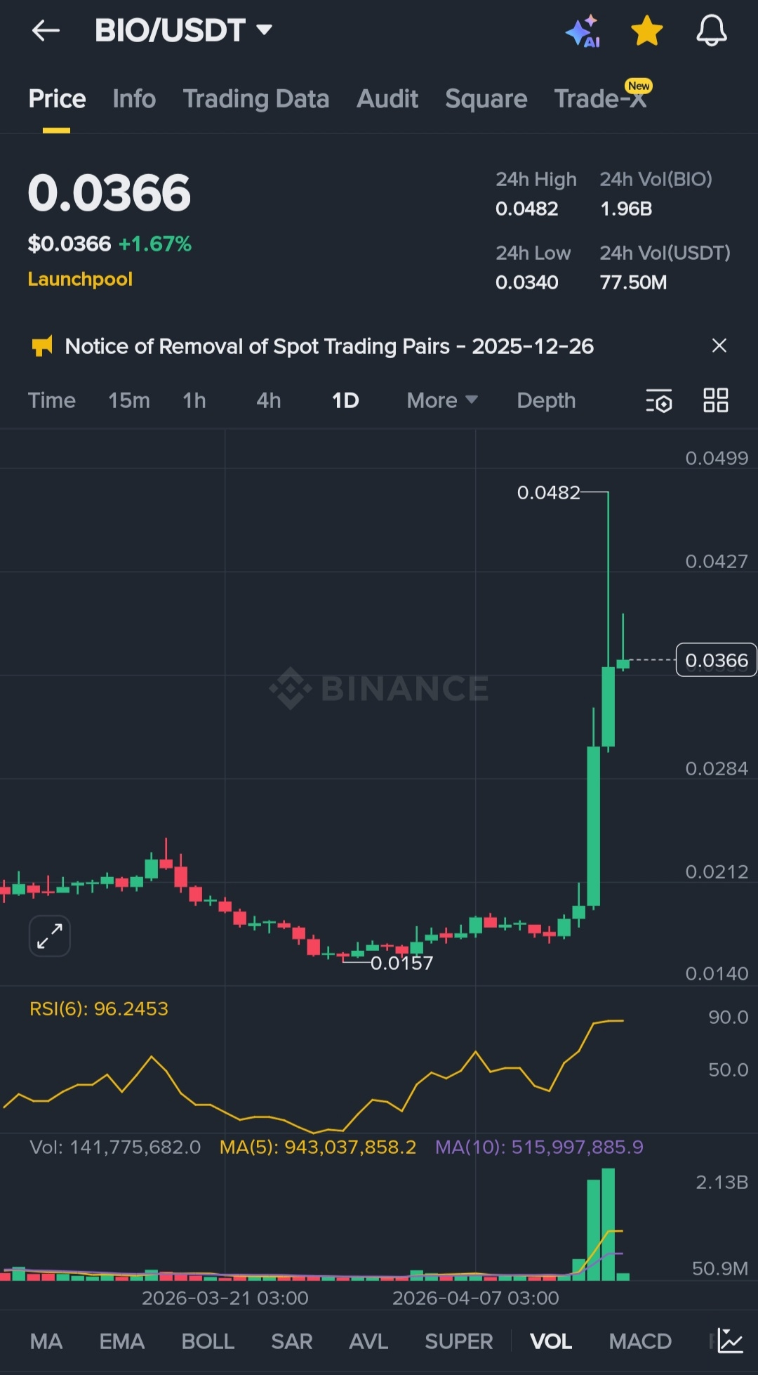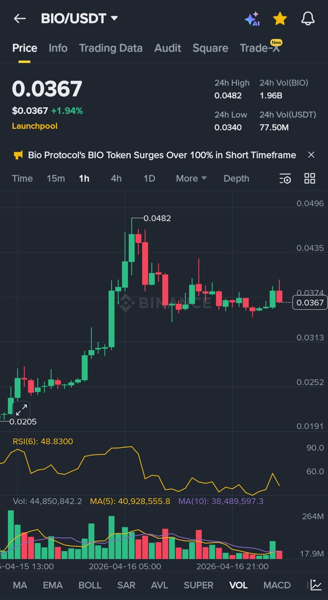 Watch the $0.047 level in the next 24 hours a daily close above it flips this from a spike into a structural breakout, and the DeSci narrative goes mainstream fast.