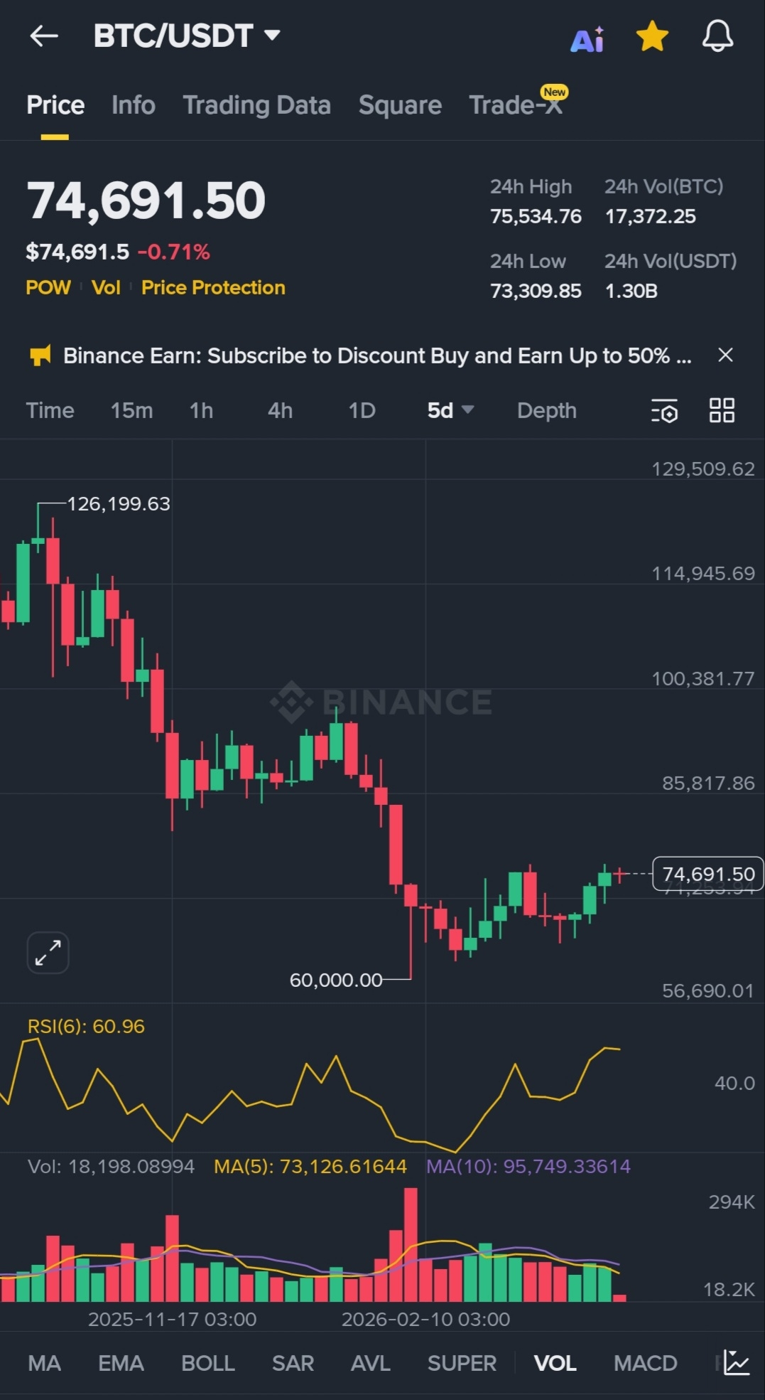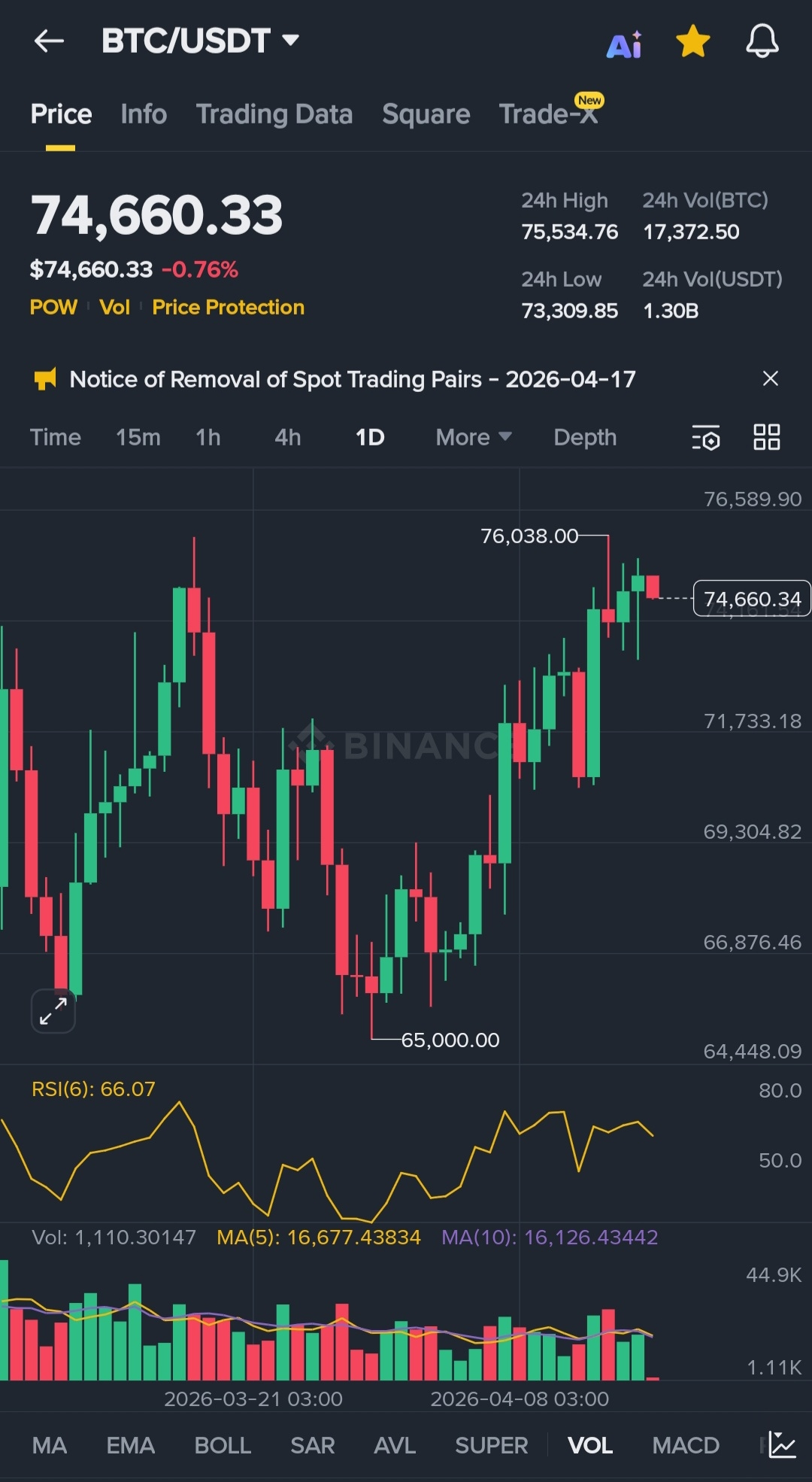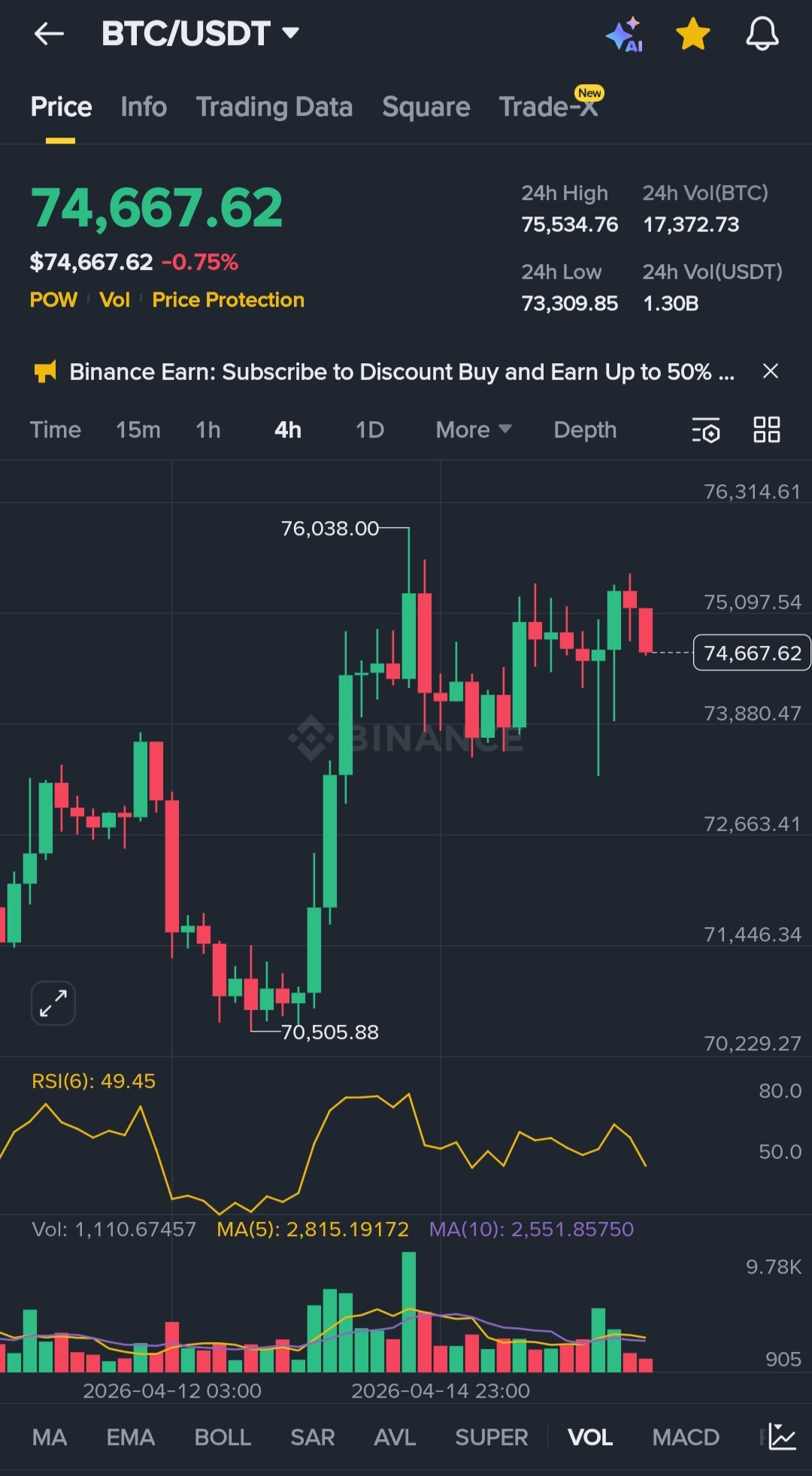 TP1: $76,000 (+2.1%) | TP2: $80,000 (+7.5%)