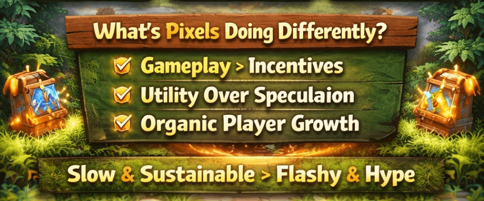 Pixels doesn’t try to immediately solve this with bigger rewards.