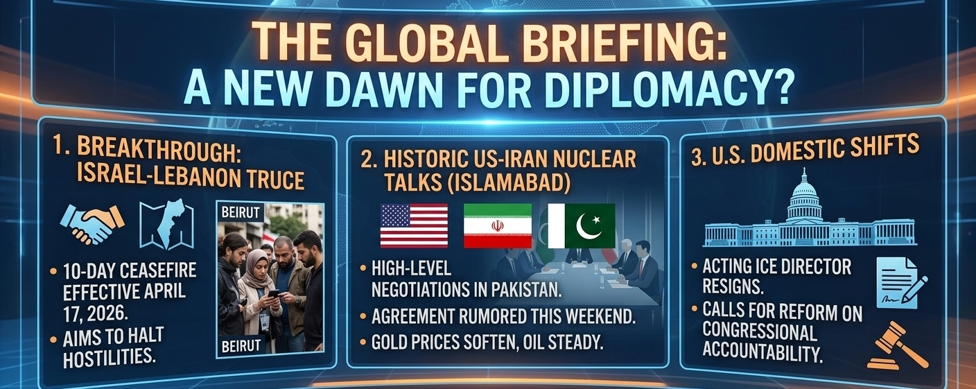 As of April 17, 2026, the global stage is dominated by major diplomatic breakthroughs in the Middle East and shifting political tides in the United States.