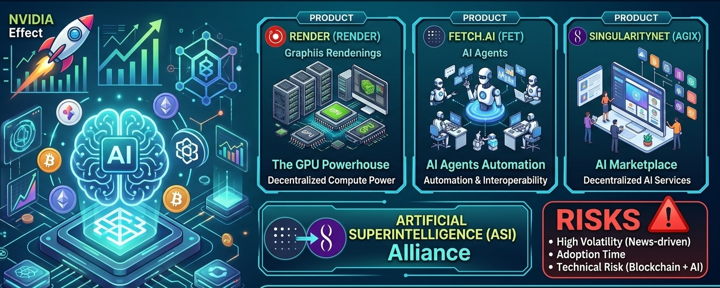 NVIDIA Effect: Traditional market mein NVIDIA ke records tod growth ne crypto investors ko convince kar diya hai ki AI ka future bright hai. Jab bhi NVIDIA pump karta hai, AI tokens mein activity badh jaati hai. 🖥️