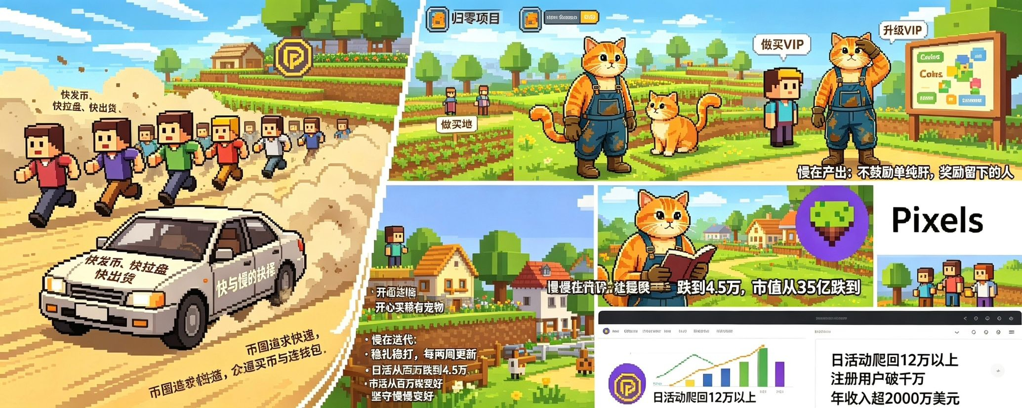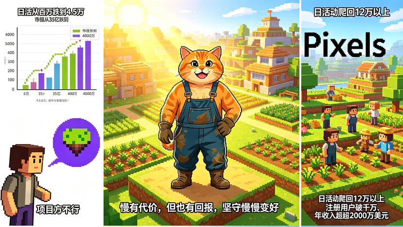 当然,慢是有代价的。Pixels从巅峰期的百万日活跌到过4.5万,市值从35亿跌到不足4000万。这个过程里,多少人骂“项目方不行了”、“链游已死”。我那时候也在观望,心里犯嘀咕:这项目是不是要凉了?