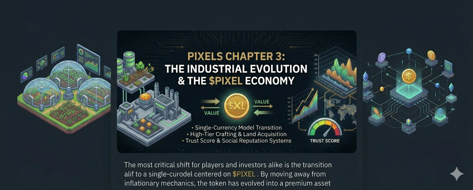 The most critical shift for players and investors alike is the transition to a single-currency model centered on $PIXEL . By moving away from inflationary mechanics, the token has evolved into a premium asset that governs high-tier crafting, social reputation, and land acquisition. This isn't just about planting crops anymore—it’s about complex resource management and cross-land collaboration. The recently introduced "Trust Score" and "Social Reputation" systems are also brilliant moves to ensure ecosystem health, linking a player's on-chain history directly to their in-game influence.