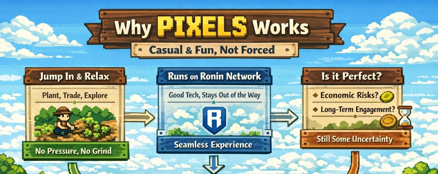 i start to see how this approach could matter beyond just one game. if Web3 is going to reach more people, it cannot always feel like a system that needs to be understood before it can be enjoyed. it has to feel natural. it has to offer something that stands on its own, even without the underlying technology being visible. Pixels seems to understand that, and i find that awareness more valuable than any short-term excitement.