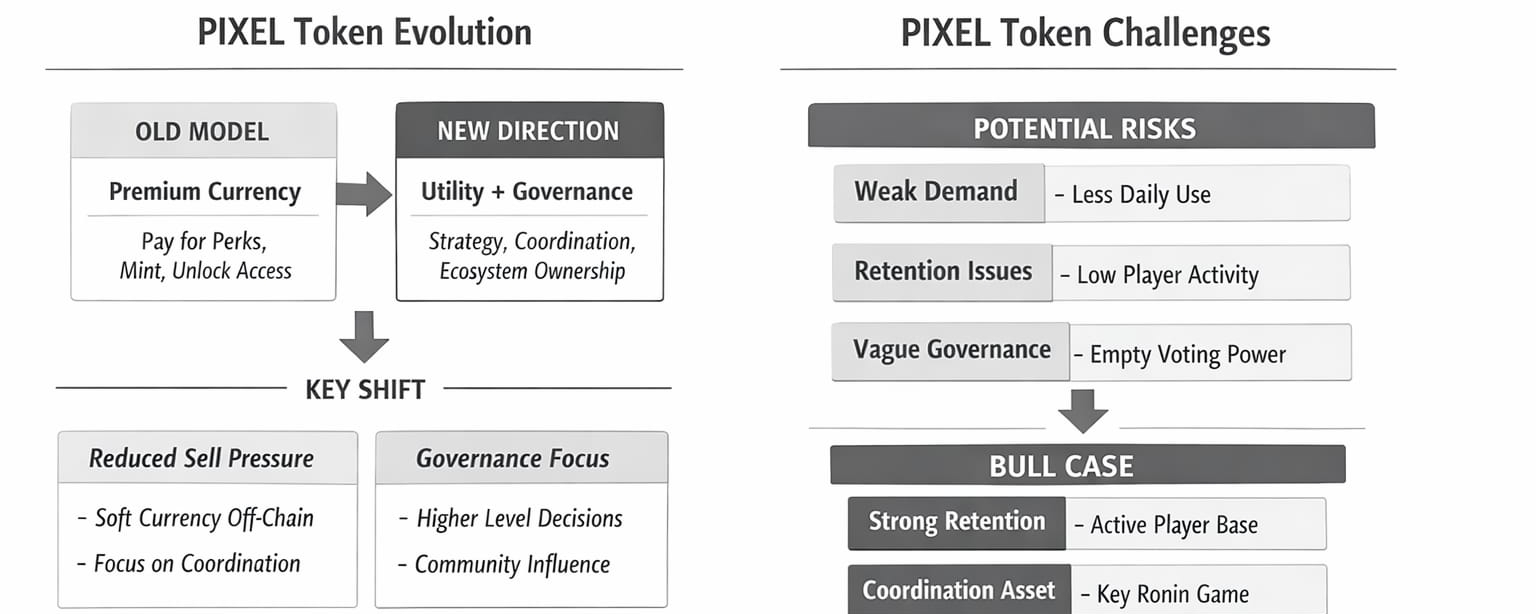But this is also where my caution kicks in. If you reduce PIXEL’s role in the everyday grind too much, you can accidentally weaken direct transactional demand before governance demand is real enough to replace it. That’s the tradeoff. Cleaner token design can make the economy healthier, but it can also make the token feel more distant from ordinary player behavior. And governance, let’s be honest, is one of the most abused words in this market. A token does not become valuable just because people say holders can vote. It becomes valuable if the thing being governed is active, sticky, and worth caring about.