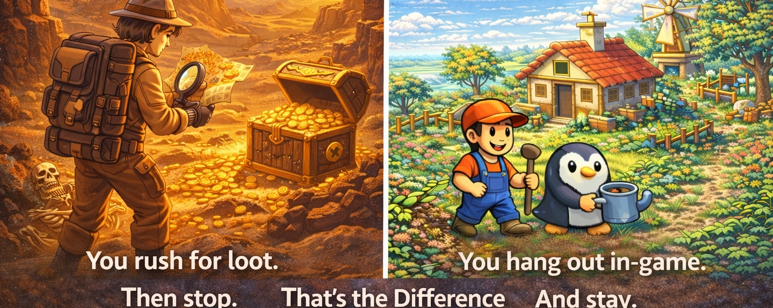 The gameplay loop is simple, almost familiar. Farming, collecting, trading, exploring. It doesn’t overwhelm you, and it doesn’t rush you either. It just gives you enough to stay engaged without forcing you to overthink. And because of that, time starts to pass differently. You don’t measure it in rewards or efficiency. You measure it in how long you stayed without realizing it. That’s where the real difference is.