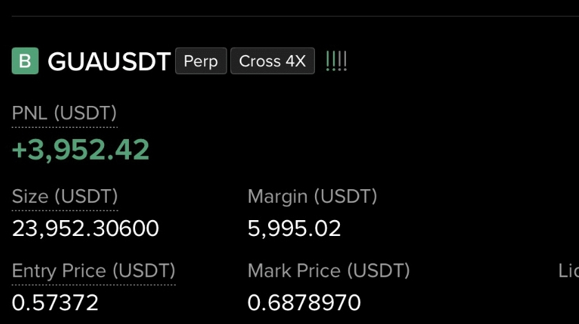 I took a long position on GUAUSDT with a clear plan — not based on hype, not on emotion, but on a setup that I trusted. From entry to execution, everything was intentional. No chasing candles, no second-guessing once I was in.