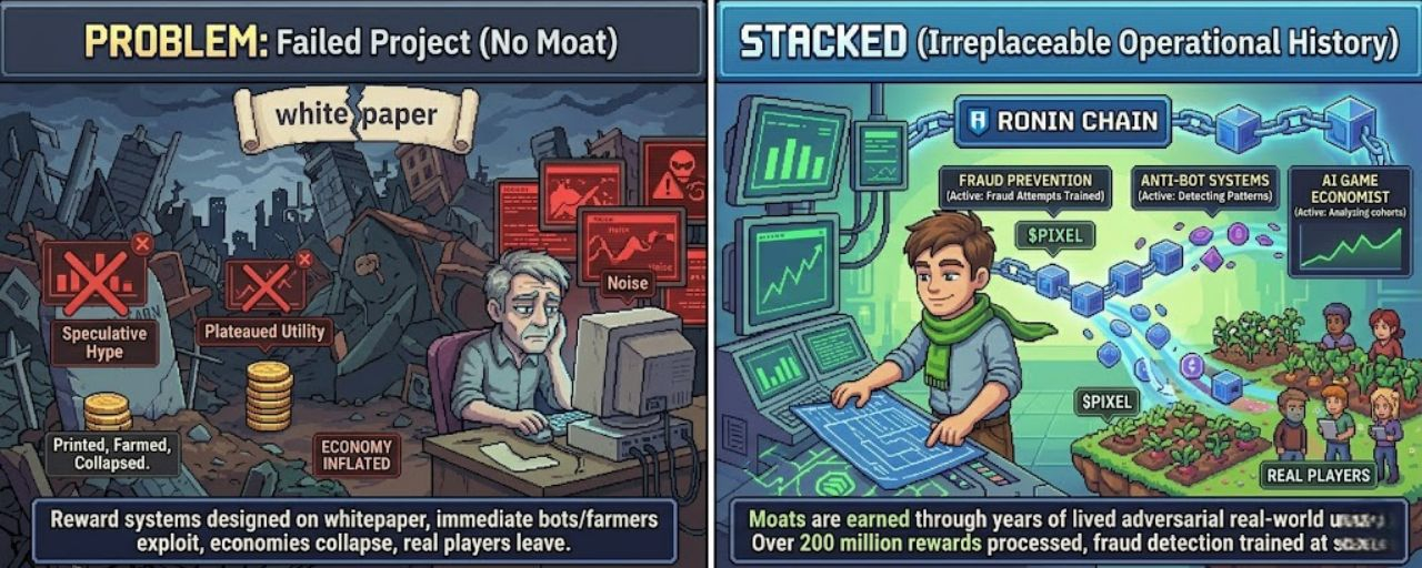Every studio that chooses Stacked over a competitor is a new demand source for the token. Every game that plugs into this infrastructure deepens the network. And because the barrier to replication is so high years of operational history fraud data behavioral AI proven economics that network grows without a credible threat of disruption from a cheap copy