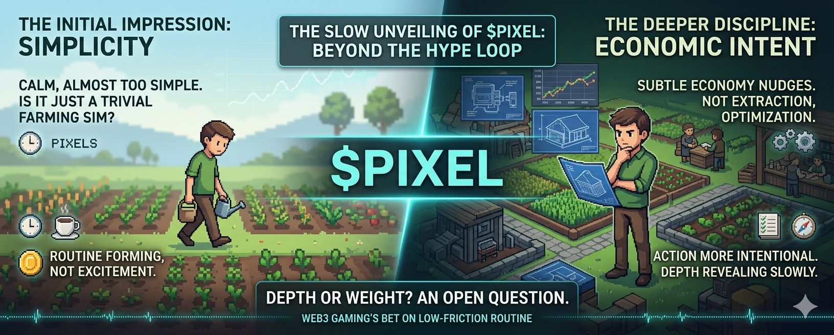 I’m watching, I’m waiting, I’m looking at how this world unfolds without rushing to decide what it is. I’ve seen enough of these systems to know that first impressions usually lie, or at least simplify something that takes time to reveal itself. I focus less on what Pixels says it is and more on what it becomes when people settle into it—when the novelty fades and routine takes over. There’s always a moment where a game stops presenting itself and starts exposing itself, quietly, through behavior.