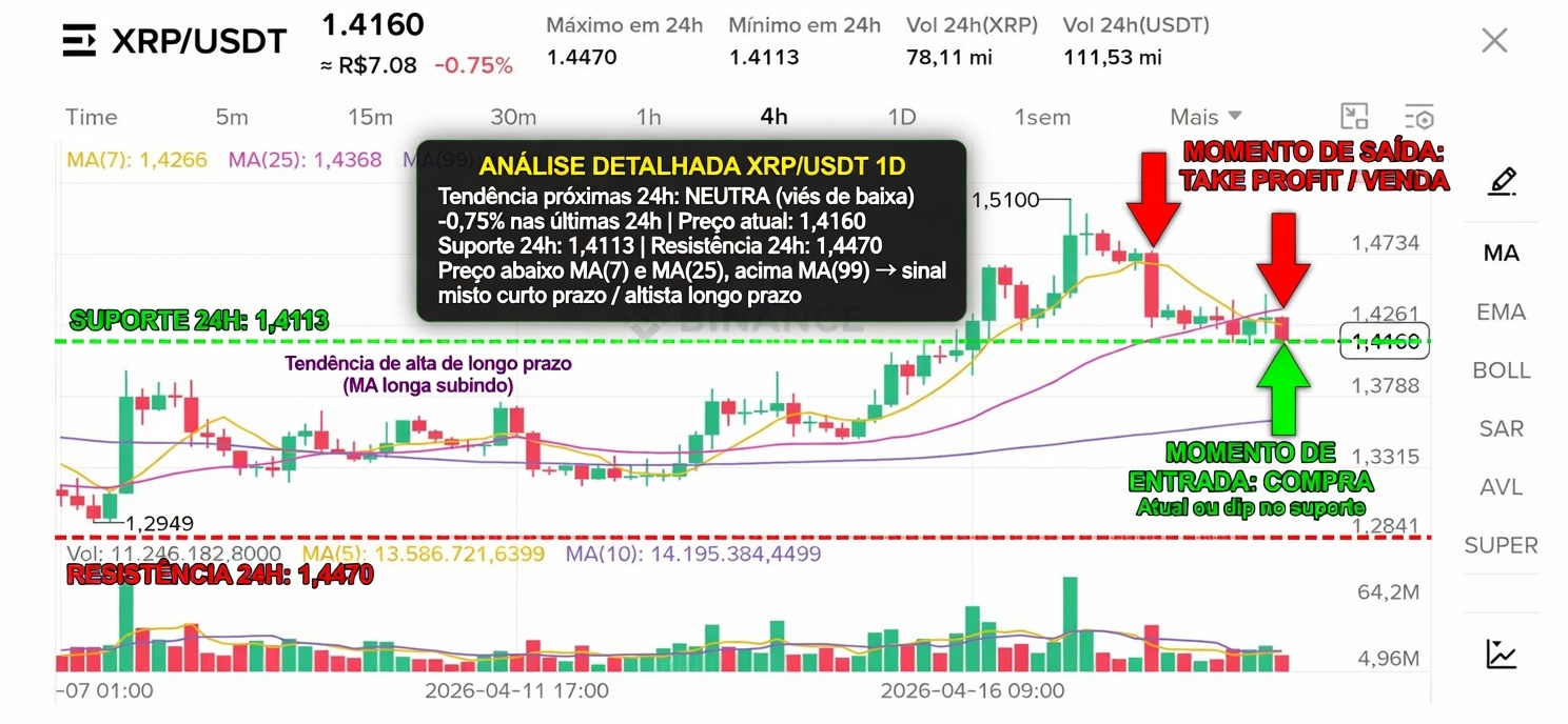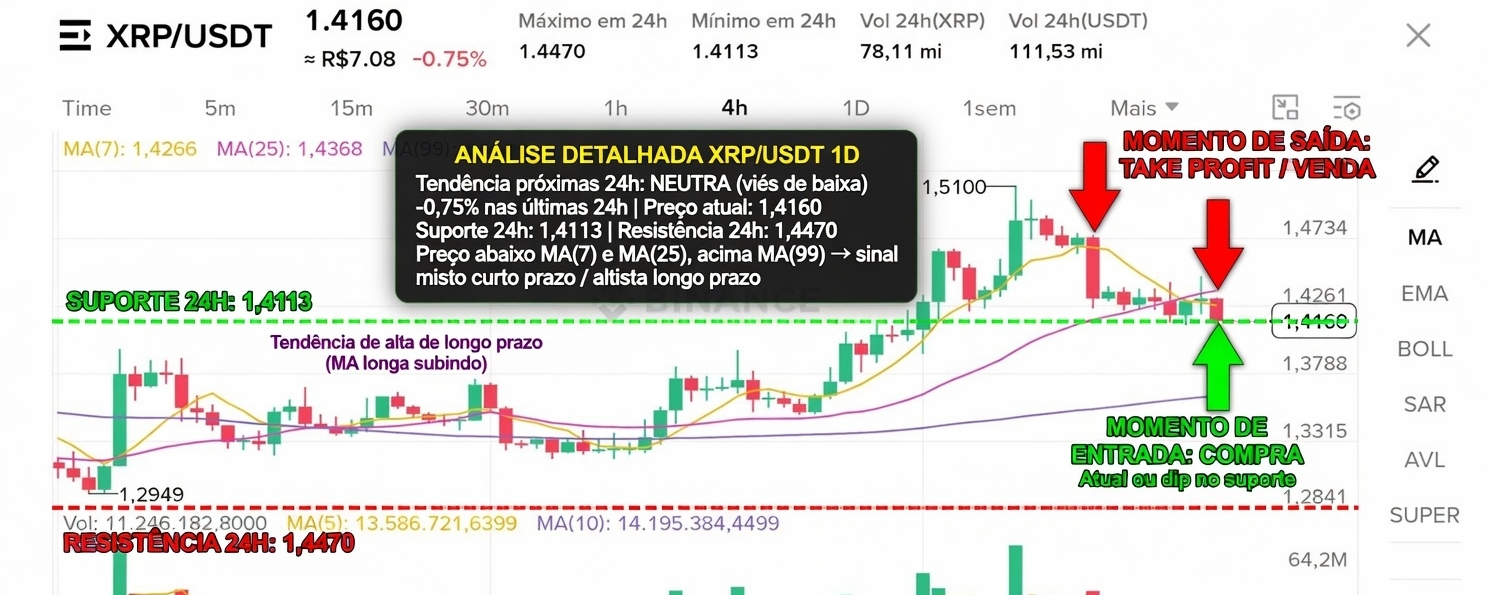 - Preço atual: 1,4160 USDT (-0,75% em 24h).