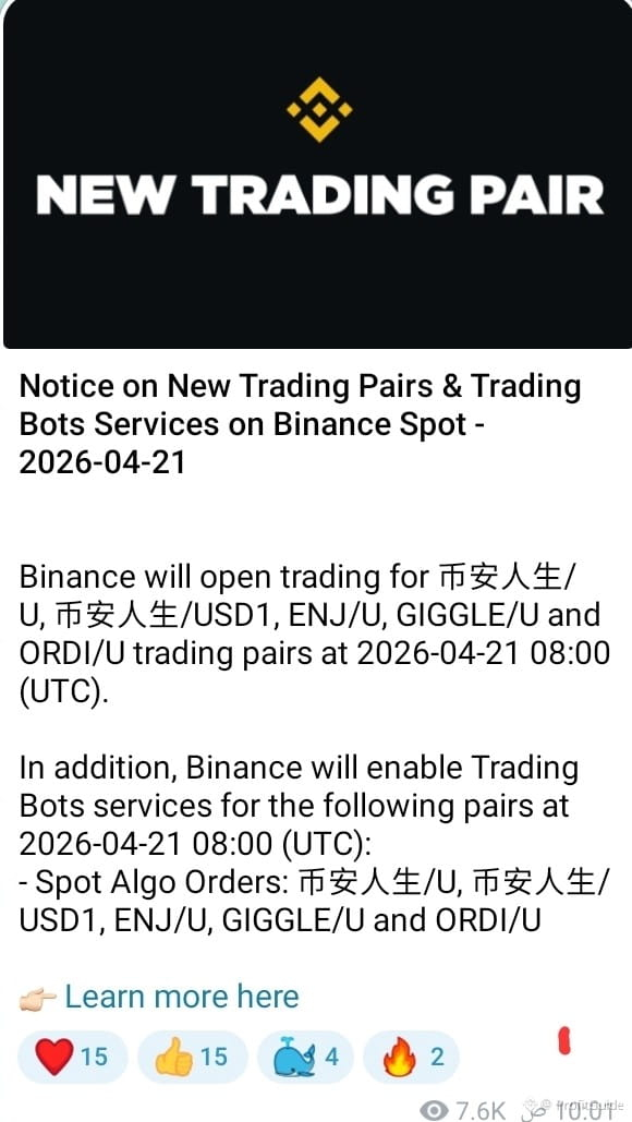 📢 Important Announcement: New Trading Pairs & Bot Services on Binance! 🚀