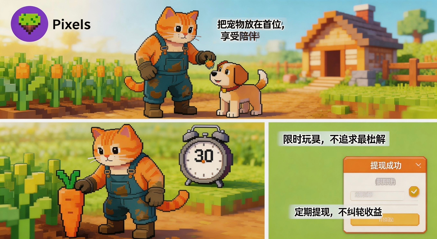 我第一次进 @Pixels 的时候,心态很纯粹:种地、砍树、做任务,放松一下。那时候 Coins 哗啦啦地涨,虽然不值钱,但数字跳动的声音让人愉悦。你点一下,就有响应;你干一下,就有收获。不需要动脑子,只需要动手指。爽就完事了。