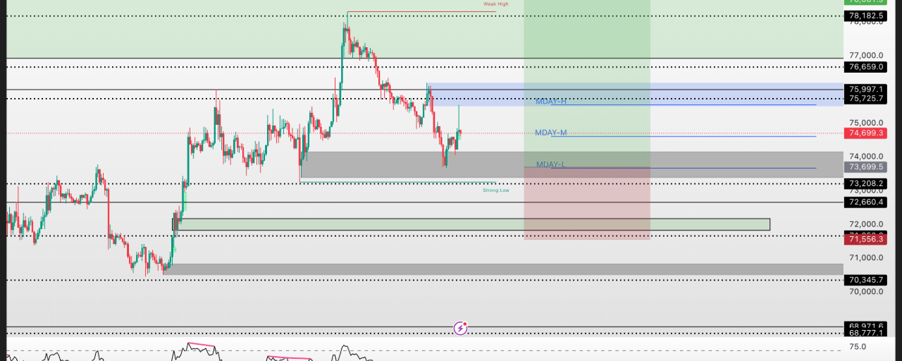 对于投资者而言,这种计划的价值在于它不预测涨跌,而是给出了清晰的“如果……就……”逻辑。在 73,000 - 72,400 这一带,仍存在未减弱的 FVG 支撑,这正是他敢于在回调中接货的技术底气。