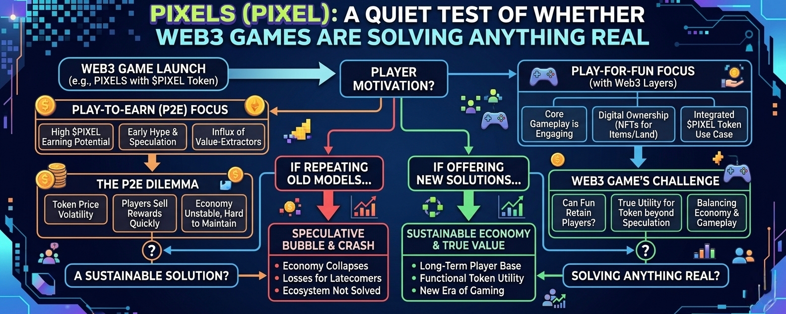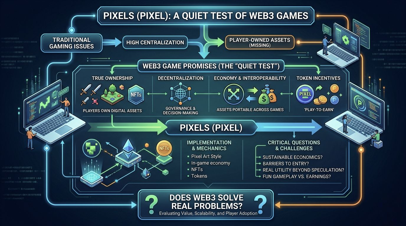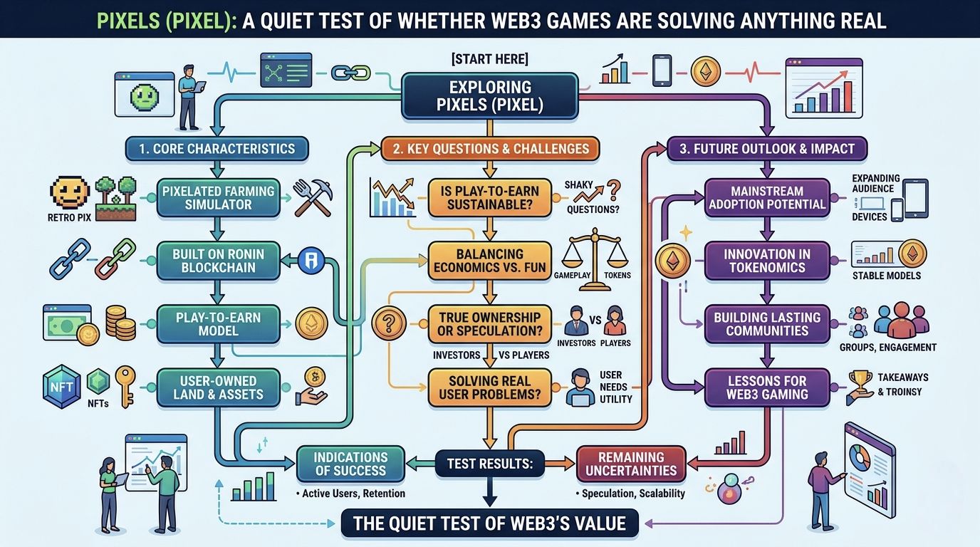 It’s difficult to look at any new Web3 project without carrying the weight of what came before it. Over the past few years, crypto has produced an endless stream of ideas that sounded plausible in isolation but struggled once exposed to actual users, incentives, and time. Games, in particular, have been a consistent disappointment often prioritizing token mechanics over playability, and financial speculation over genuine engagement. So approaching something like Pixels starts less from curiosity and more from a quiet question: is this another system that works better in theory than in practice?