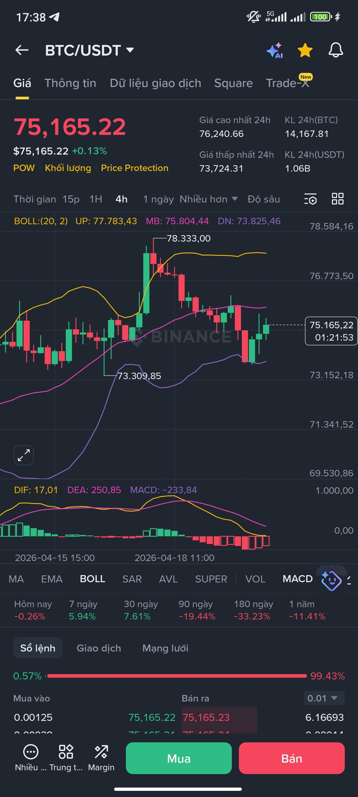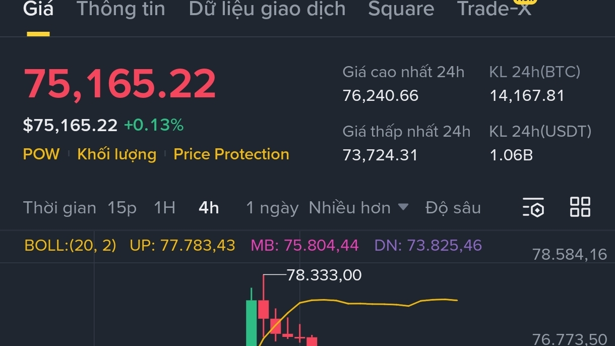 → BTC loanh quanh $74,300–$75,800, vẫn đang yếu nhẹ
